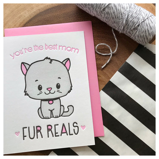 Funny Cat Mom Letterpress Card | You're the Best | Fur Reals Pun | kiss and punch