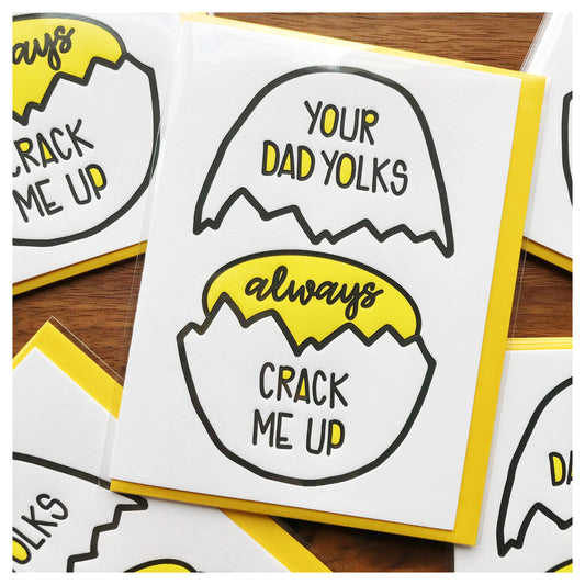 Funny Father's Day Letterpress Card | Dad Yolks Crack Me Up | Egg Pun | kiss and punch
