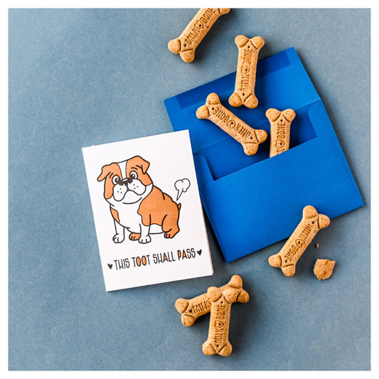 Funny Encouragement Sympathy Letterpress Card | This Toot Shall Pass | Farting Bulldog