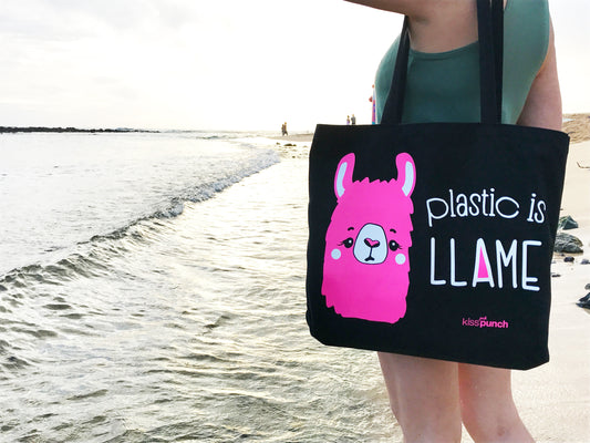 LIMITED EDITION - Plastic is Llame Llama Screenprinted Tote Bag | Donation | kiss and punch