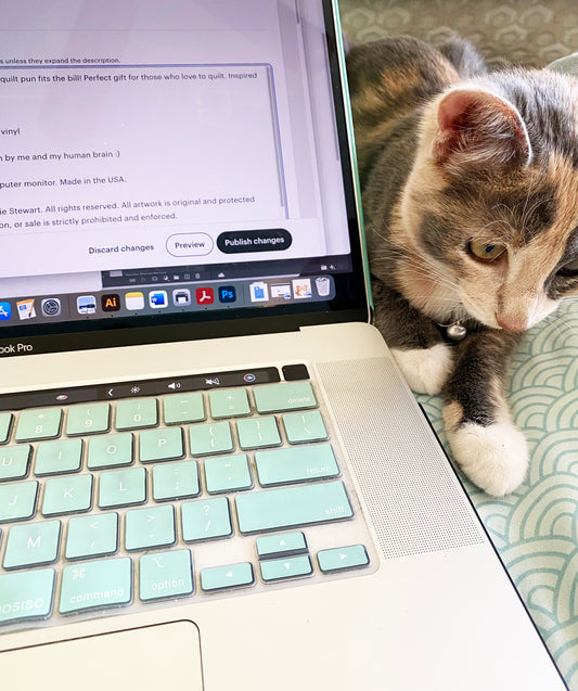NEW! Punny Cute Quilty As Charged Cat Diecut Vinyl Sticker