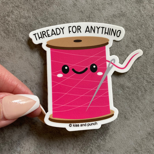 3 Inch Punny Spool Thready for Anything Matte Vinyl Sticker