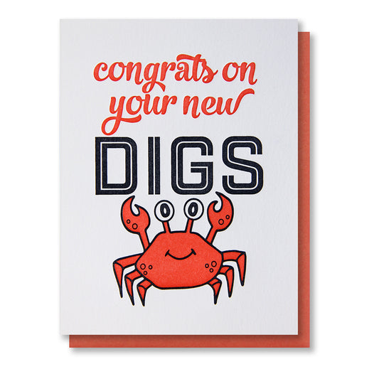 Crab Digs New Home Congratulations Letterpress Card | kiss and punch