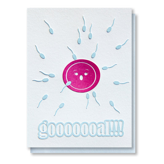 Funny Baby Expecting or Baby Shower Letterpress Card | Sperm Egg | Gooooal | kiss and punch