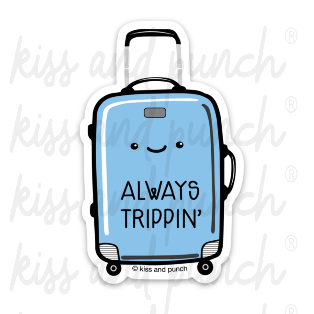 Funny 3 Inch Always Trippin' Luggage - Travelista Diecut Vinyl Sticker | kiss and punch